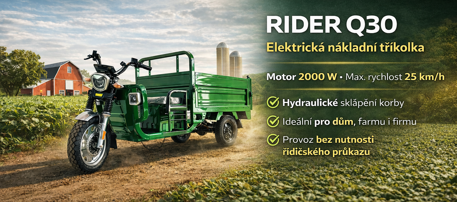Rider Q30 – moderní elektrickou tříkolku navrženou pro maximální výkon, pohodlí a efektivitu v těžkých provozních podmínkách.